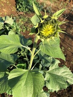 一方で、今年の夏に咲いたひまわりのこぼれ種が芽吹き、数日中に咲きそうです。